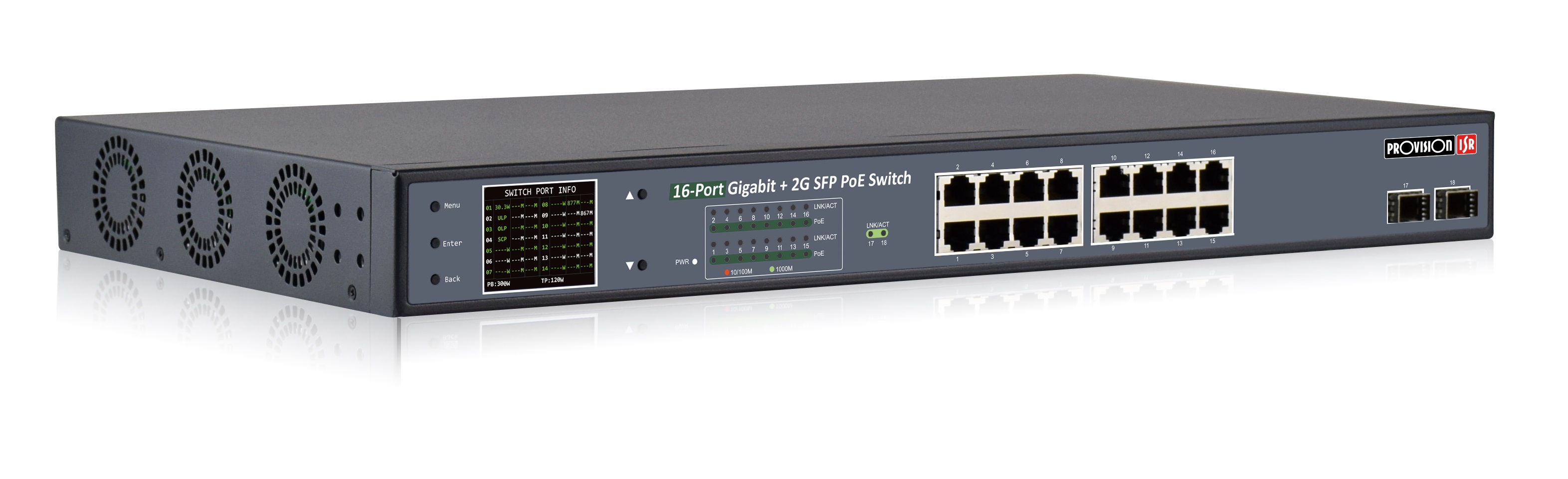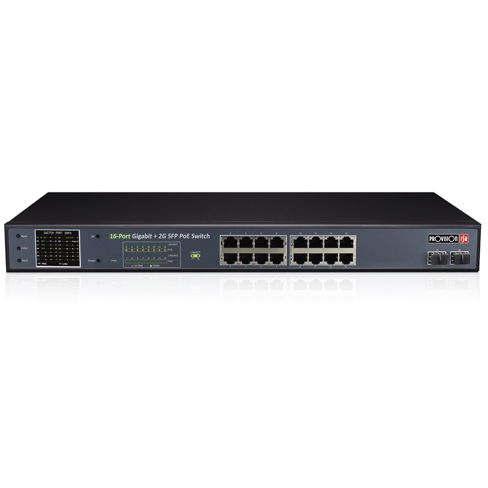 PROVISION-ISR 16+2 SFP portos POE Switch, 10/100/1000Mbps, 2x1Gbps SFP optikai uplink port