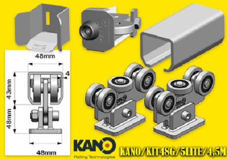 KANO 2db 5-ös görgőcsoport, 1db felfutó görgő, 1db fogadó, sín nélkül