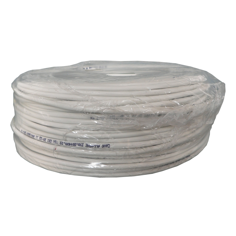 - Külső burkolat: Fehér PVC köpeny, amely ellenáll a mechanikai sérüléseknek és a környezeti hatásoknak