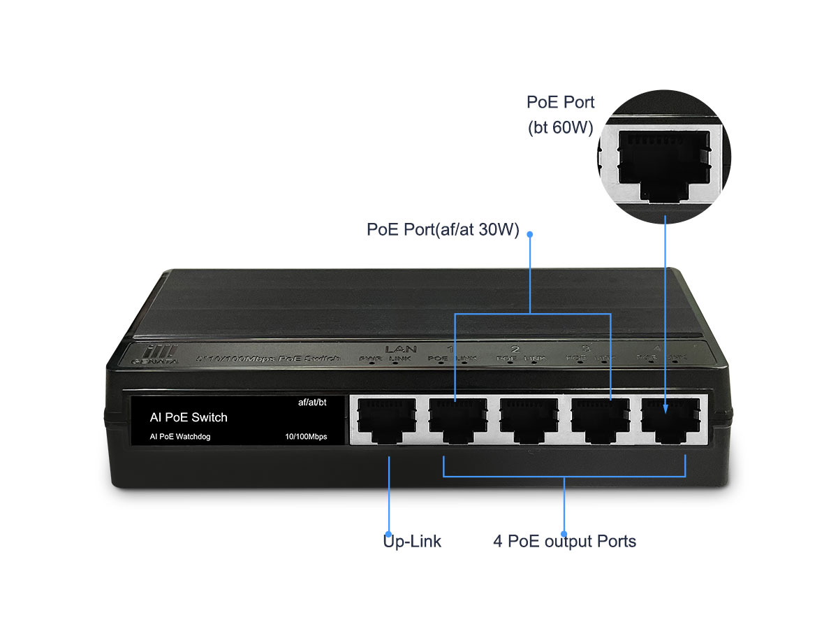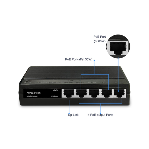 GENATA 4FE (PoE) + 1FE (UP-LINK) AI PoE Switch