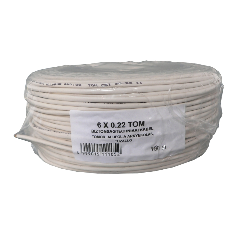 HONNOR SECURITY Kábel, 6 eres biztonságtechnikai, 0,6 mm névleges átmérőjű tömör réz erek, alumíniumfólia árnyékolás, fehér PVC köpeny, olasz biztonságtechnikai kábel