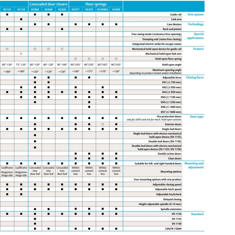 - Csukóerő: EN 3 (EN 1154 szabvány szerint)