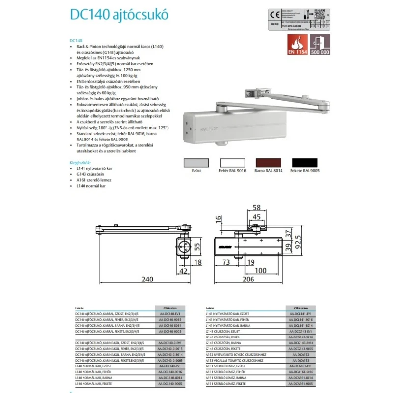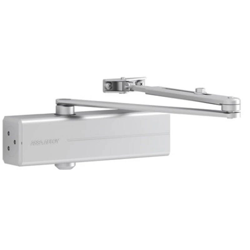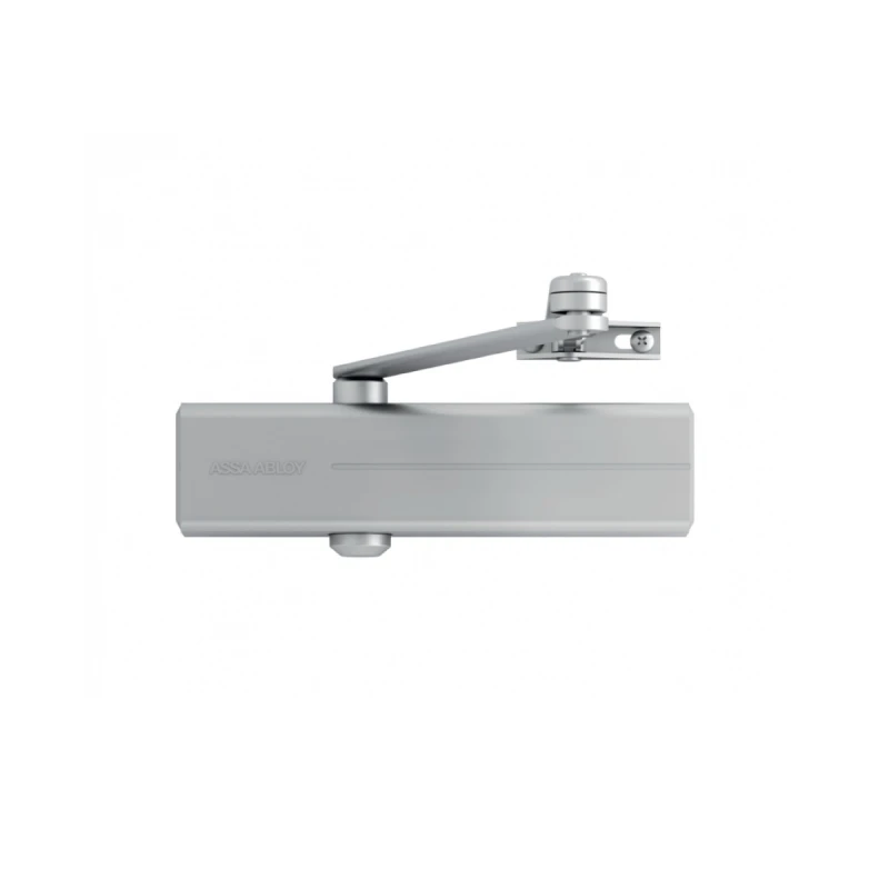 ASSA ABLOY Ajtóbehúzó test, ezüst, max. 1400 mm ajtószélességig, max 120kg-os ajtókig, állítható kar magasság (14mm), csukóerő: EN 3-6, Méret (HxSZxM):306 x 69 x 63 mm, Súly:2,1 kg.