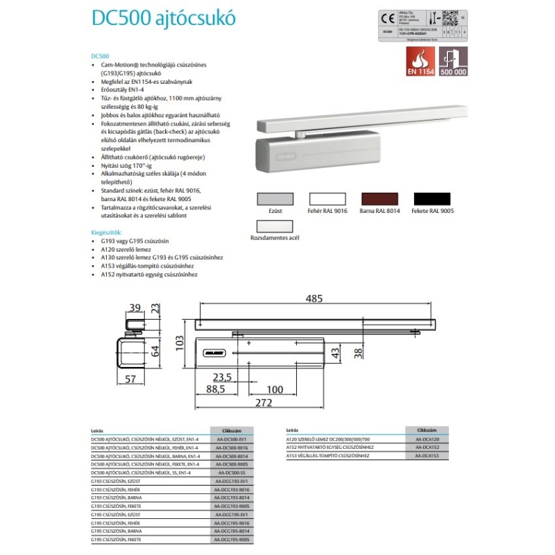 - Cam-Motion® technológiájú csúszósínes (G193/G195) ajtócsukó