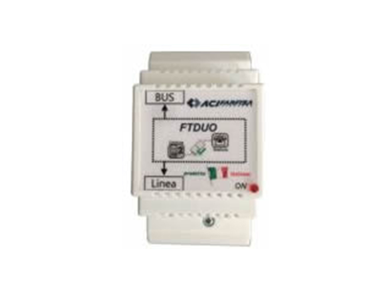 FARFISA ACI FARFISA - FTDUO olyan eszköz, amely lehetővé teszi a Duo digitális busz csatlakoztatását a fővonalhoz vagy a telefon PABX-hoz.