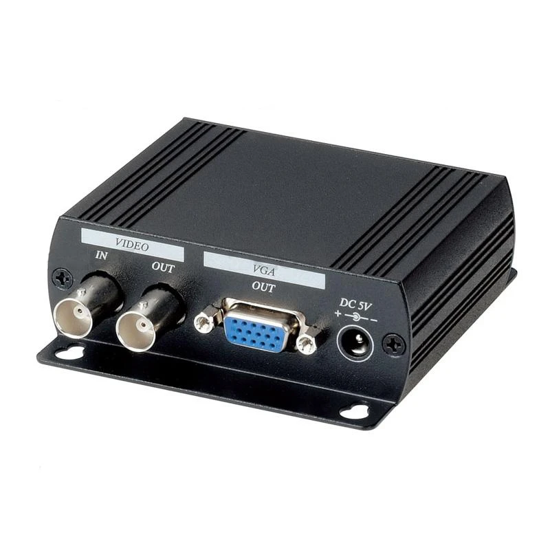 SC&,T Videojel-VGA átalakító, kompozit, BNC bemenet, áthurkolt BNC kimenet, VGA kimenet, OSD menü, támogatott felbontások: 640x480/800x600/1024x768/1280x1024, támogatott frekvencia: 50/60Hz (PAL/NTSC), 5Vdc, 230Vac adapterrel36