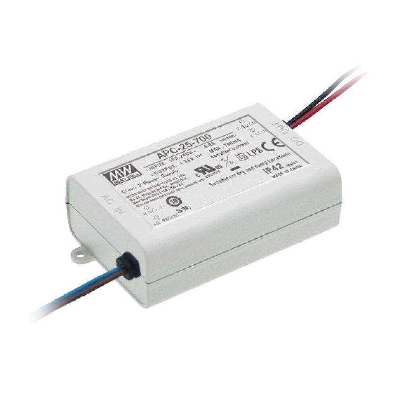 APC 25-70V/25W/350mA LED tápegység – állandó áramú, IP42, műanyag ház, SCP/OVP védelemmel