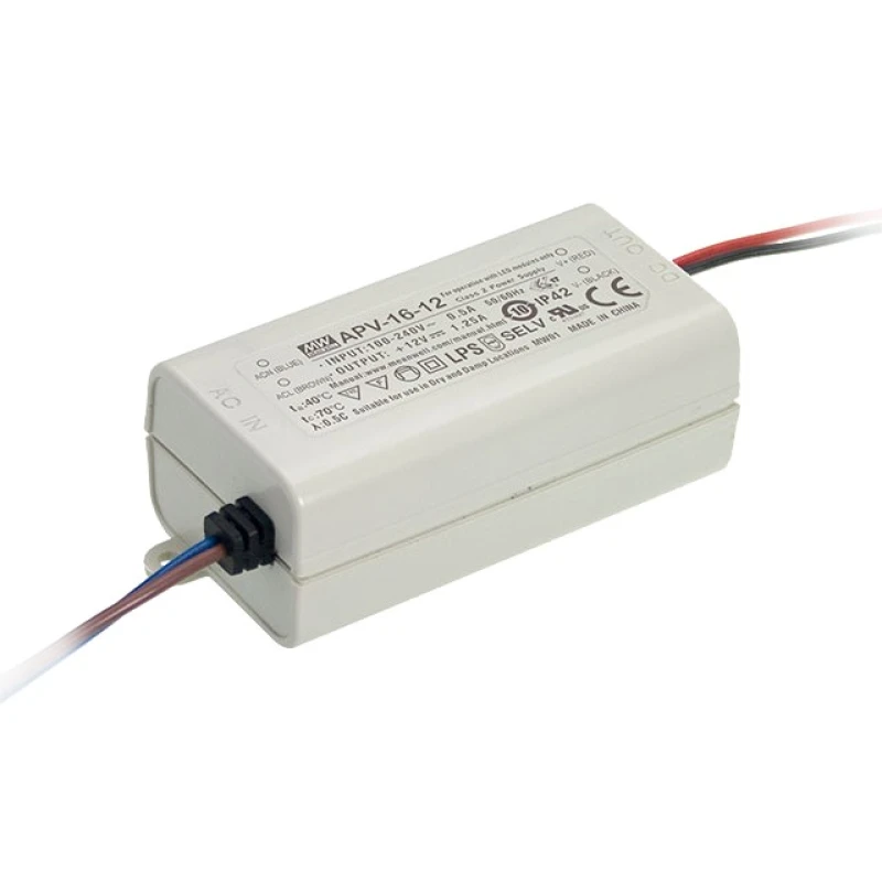 APV 12V/16W/1.25A LED tápegység IP42 műanyag ház, rövidzár-, túlterhelés- és túlfeszültség-védelemmel