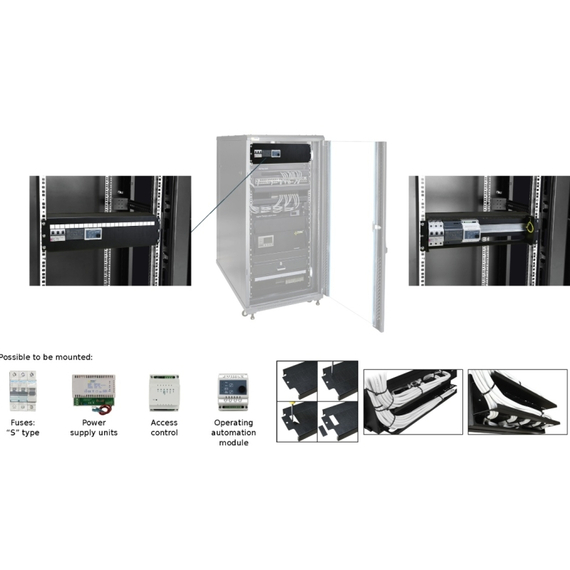 A panel kifejezetten feszültségelosztó rendszerek számára lett tervezve, ahol a DIN sínre szerelhető biztosítékok gyors és egyszerű telepítése, valamint karbantartása elsődleges szempont. A termék 19” RACK S típusú szekrényekbe illeszkedik, így kiválóan alkalmazható ipari, informatikai vagy távközlési környezetben is.