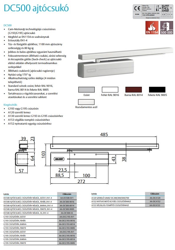- Cam-Motion® technológiájú csúszósínes (G193/G195) ajtócsukó