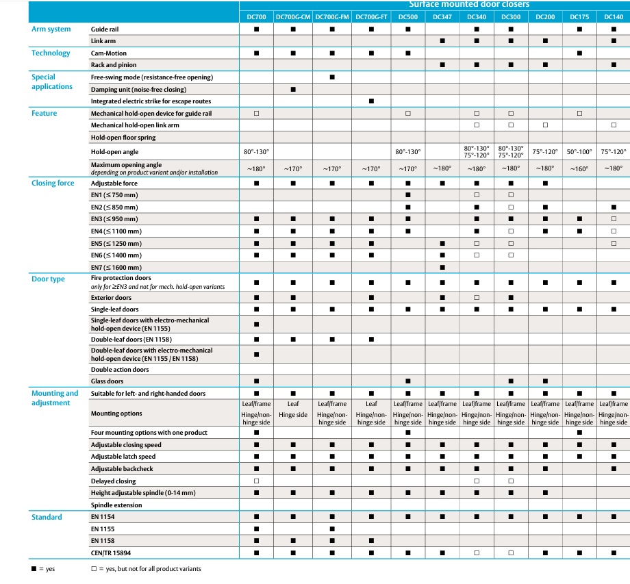 - Tűz- és füstgátló ajtókhoz, 1100 mm ajtószárny szélességig és 80 kg-ig