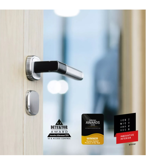 A diszkrét, modern dizájn és a minimális helyigény biztosítja, hogy a H100 minden modern irodai környezetbe beleolvadjon. Nem meglepő módon az Aperio H100 elektronikus fogantyú elnyerte a Detektor International Innovative Achievement Award díját, az Intersec az év beléptető terméke és az Innovative Interior Iconic Award 2020 díját.