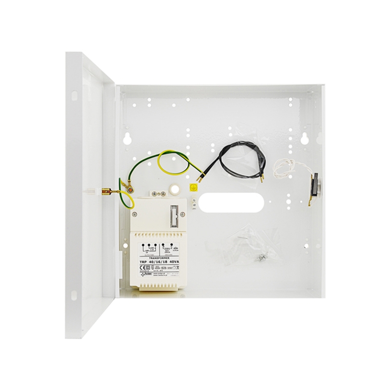 PULSAR fémház transzformátorral, Paradox központokhoz, TRP 40VA tápegység, 16V@2,2A / 18V@2A, 12V/7Ah akkuhely, tamper: 1xNC, PARADOX (728 ULT, E55, E65, MG5000) + PS817, SP4000, 5500, 6000, 7000, EVO48, EVO192 központokhoz, 2 x ZX8, PGM4, ACM12, APR3- ADM2, PS17, (ACM, APR3- ADM2, PS17) + PS817, APR3- HUB + ZX8(PGM4) + PS817 modulokhoz, fehér színű acéllemez ház, szabotázskapcsoló, IP30, méret 250x250x80 mm