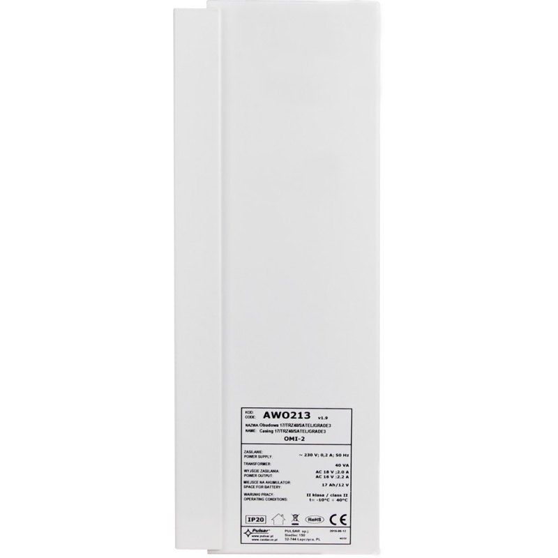 A PULSAR TRZ 40VA típusú tápegységgel szerelt fémház biztonságtechnikai rendszerekhez készült, elsősorban SATEL riasztóközpontok és modulok tápellátására. A termék megfelel az EN50131 szabvány Grade 3 szintjének, így magas biztonsági követelményeket támasztó rendszerekben is alkalmazható. A robusztus, fehér színű acéllemez ház 12V/17Ah akkumulátor befogadására alkalmas, beépített szabotázsvédelemmel és megbízható TRZ 40VA transzformátorral rendelkezik. A kivitel és a műszaki paraméterek lehetővé teszik a termék széleskörű felhasználását különféle központok és bővítőmodulok esetén.