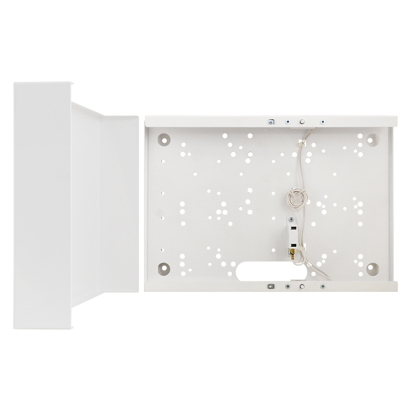 PULSAR szabotázsvédett fém doboz, illetéktelen hozzáférés elleni mechanikus védelme, kompatibilis: Satel/DSC/PARADOX, kinyitás elleni szabotázsvédelem, 0.7 mm vastagságú acéllemez ház, külső méret: 295x205x60mm, beltéri alkalmazás, fehér szín