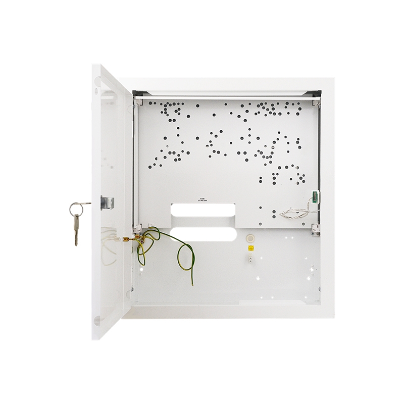 A PULSAR 17/40/M-F/PUSTA egy professzionális, süllyesztett szerelésre tervezett fém burkolat, amely ideális DSC, PARADOX, RISCO, SATEL, PYRONIX, TEXECOM, TELMOR, ROGER, EBS és PULSAR rendszerekhez. A doboz kialakítása lehetővé teszi a 17Ah/12V akkumulátor biztonságos elhelyezését, miközben a beépített tamper kapcsoló gondoskodik a szabotázsvédelemről. A zárral történő zárás és a 8 mm-es faltól való távtartás biztosítja a megbízható és esztétikus telepítést, különösen riasztórendszerek és vezérlőpanelek esetében.