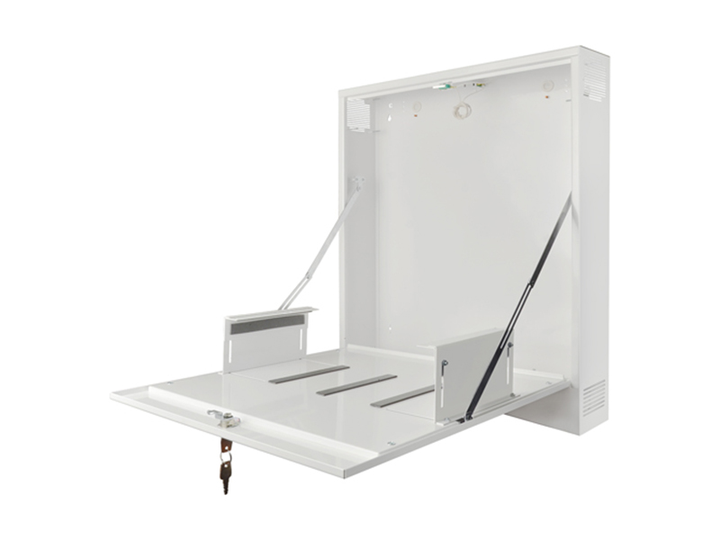 PULSAR közepes méretű szabotázs védett fém doboz, videorögzítők illetéktelen hozzáférés elleni mechanikus védelme, függőleges falra történő felszerelés, vízszintesen lenyitható előlap, 245~445 mm szélesség között állítható belső tartófülek, kettős - kinyitás és falról történő eltávolítás elleni - szabotázsvédelem, mechnanikus zár, 1 mm vastagságú acéllemez ház, méret külső/belső 535x650x130 / 490x630x110 mm, beltéri alkalmazás, fehér szín, működési hőmérséklet -10°C~+40°C, opcionális tartozék: ARAW45 ventillátor hőmérsékletérzékelővel