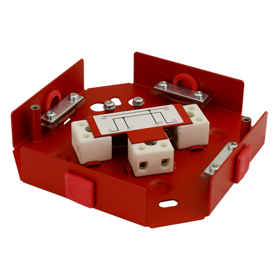PULSAR Szétosztó kötődoboz, CNBOP-PIB megfelelőségi tanúsítvány, megfelel: No. AT-0601-0422/2014, Tűzállósági osztály: E30, E60, E90, Feszültség: 450V AC max, Dobozba bevezethető kábel keresztmetszet: max 10mm, Beköthető vezeték keresztmetszet: max. 2x2,5mm2, Védelmi osztály: IP20, Doboz anyaga: DC01 1mm acéllemez, szín: RAL3001 (piros), Méret: 120x120x37 mm