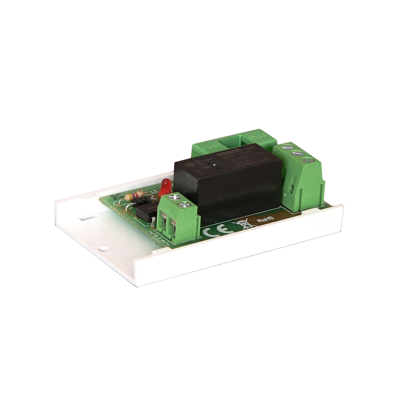 PULSAR Relémodul, bemenet 10~24 Vdc/Vac, vezérlőáram 33mA@12Vdc, 1 db váltóérintkező, érintkező maximális terhelése 30 Vdc/250Vac 6A, 6.3 A üvegcsőves biztosíték, csavaros vagy öntapadós rőgzítés, méret 70x43x23 mm, működési hőmérséklet -10~+40°C, CE, RoHS