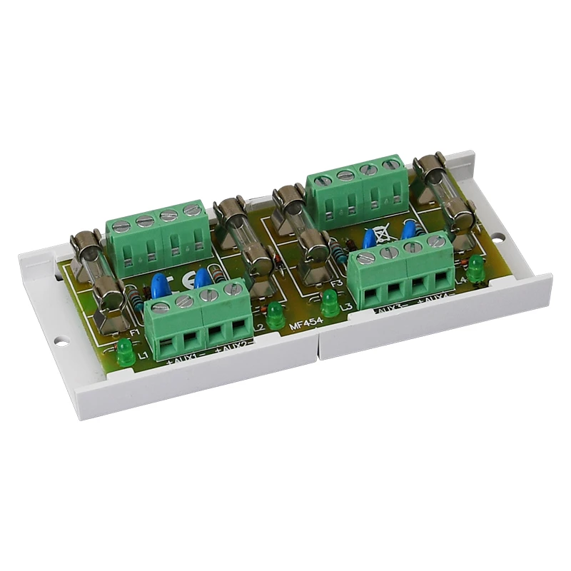 PULSAR FTA biztosíték modul. Feszültség: 10÷30VDC / 10÷24VAC. Kimeneti feszültség: 4x1,5A – TOPIK – galvanikusan elválasztott csatornák. Vezeték keresztmetszet: max. 1mm2. Bemenetek/kimenetek száma: 4/4. Védelem: SCP, OLP*, túlfeszültség védelem. Kiegészítő funkciók: LED kijelzés. Rögzítési opciók: rögzítő keret csavarral vagy kétoldalas ragasztóval. Méret: Mé=100, Szé=43, Ma=20 (+/-2mm)Megjegyzés: egymástól független bemenetek és kimenetekl.