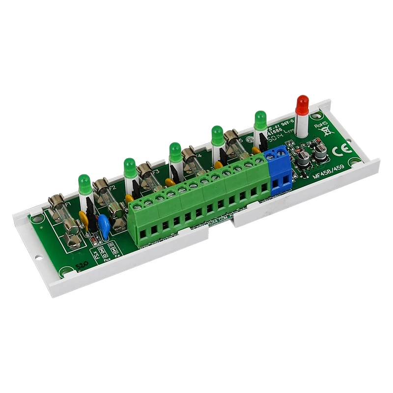 PULSAR AW biztosíték modul. Feszültség: 10÷30VDC / 10÷24VAC. Kimeneti feszültség: 5x0,5A – PTC/TOPIC, (5x1A- TOPIC - nem tartozék). Vezeték keresztmetszet: max. 2,5mm2. Bemenetek/kimenetek száma: 1/5. Védelem: SCP, OLP*, túlfeszültség védelem. Kiegészítő funkciók:- LED kijelzés. - jumper választható védelmi mód (polyswitch vagy üvegbiztosíték). OC típusú technikai kimenet: FPS – biztosíték hiba vagy tápfeszültség hiba AC/DC. Rögzítési opciók: rögzítő keret csavarral vagy kétoldalas ragasztóval. Méret: Mé=150, Szé=43, Ma=30 (+/-2mm). Megjegyzés: Szétosztó/kötő modul