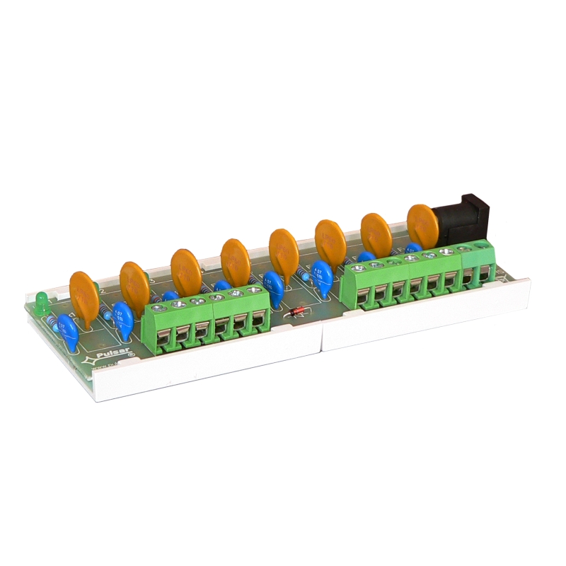 PULSAR LB8/1.0A/PTC biztosíték modul, 10-30VDC tápfeszültség, 8x1.0A - PTC, maximális átmérő: 1mm2, 2 bemenet / 8 kimenet, méret: 124x43x21