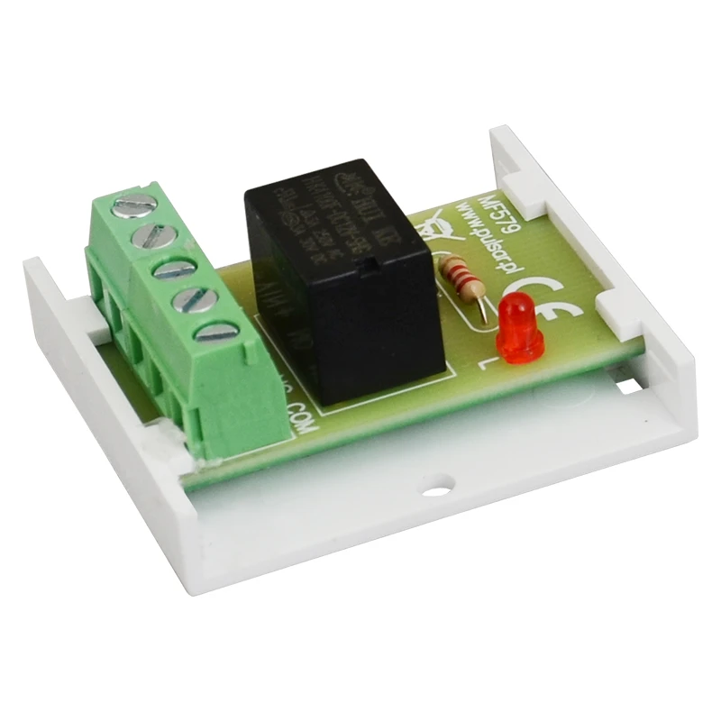 PULSAR MP1E relé modul, bemenet 10~14Vdc, vezérlőáram 12Vdc/25mA, 1 db REL C/NO/NC, érintkező maximális terhelése 30Vdc/50Vac 1A, csavaros vagy öntapadós rőgzítés, méret 40x43x20 mm, működési hőmérséklet -10~+50°C, CE