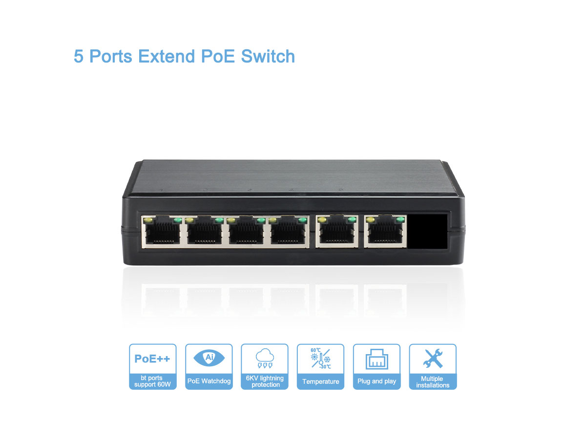GENATA 4GE(PoE)+1GE(UP-LINK) PoE Switch 5 portos