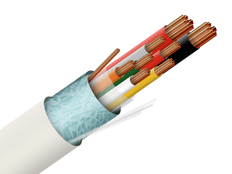 - Külső burkolat: Fehér PVC köpeny, amely ellenáll a mechanikai sérüléseknek és a környezeti hatásoknak