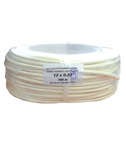 CQR Biztonságtechnikai kábel, 4-eres ,ónozott sodrott réz erek, alumíniumfólia árnyékolás és földvezeték, vékony fehér PVC köpeny, rendkívül könnyű blankolni és forrasztani, nedves, párás helyeken (templom, pince, stb.) is használható, a rézreve jelenség elkerülésére, évekkel hosszabb élettartam