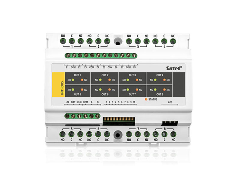SATEL INT-ORS Bővítőmodul – 8 bemenet / 8 relés kimenet, DIN-sínre szerelhető