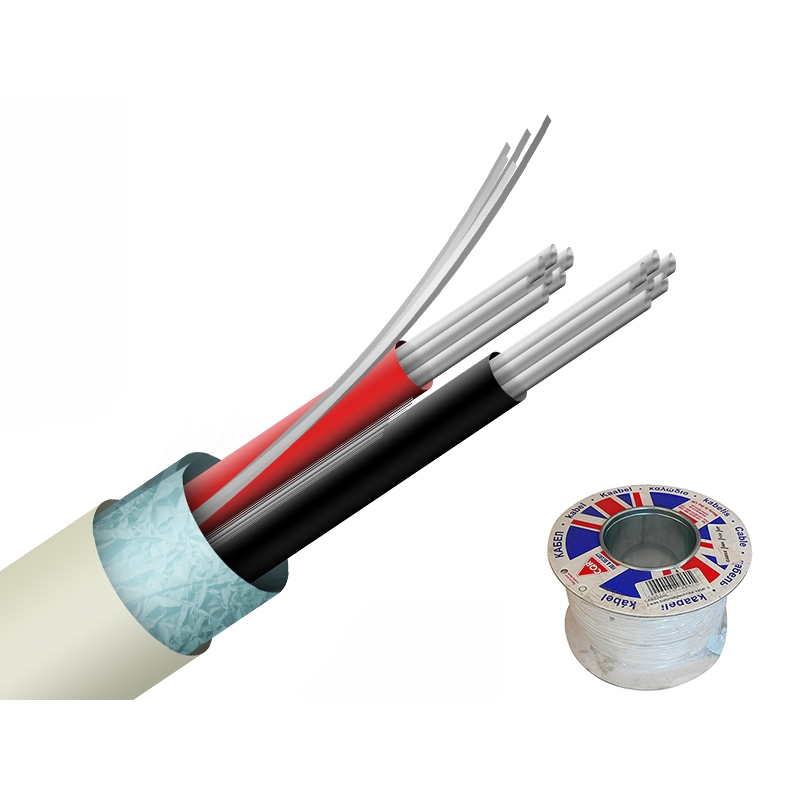 CQR Biztonságtechnikai kábel, 2-eres ,ónozott sodrott réz erek, alumíniumfólia árnyékolás és földvezeték, vékony fehér PVC köpeny, rendkívül könnyű blankolni és forrasztani, nedves, párás helyeken (templom, pince, stb.) is használható, a rézreve jelenség elkerülésére, évekkel hosszabb élettartam