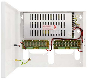 PULSAR CCTV tápegység, 16 csatornás. 16x1A/12VDC, LED állapotvisszajelzés.