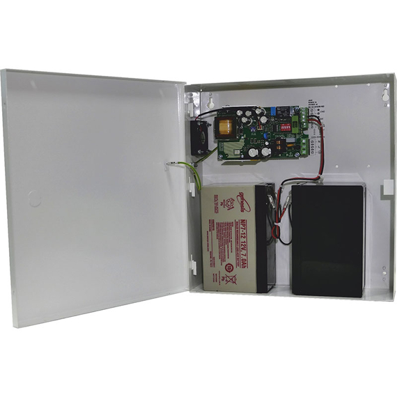 MAKRAI CCTV tápegység fémdobozban, bemeneti feszültség 230 VAC, kimeneti feszültség 24-27,6 VDC, kimeneti áramerősség 5 A, akkumulátor töltő kimenet 1 A, működési hőmérséklet -10 °C…+ 40 °C, 290 x 280 x 75+8 mm