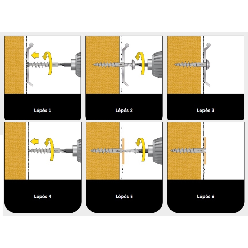- Előfúrás nélküli rögzítés: Az éles fúróhegynek köszönhetően 7 mm vastagságig nincs szükség előfúrásra a vakolaton.
