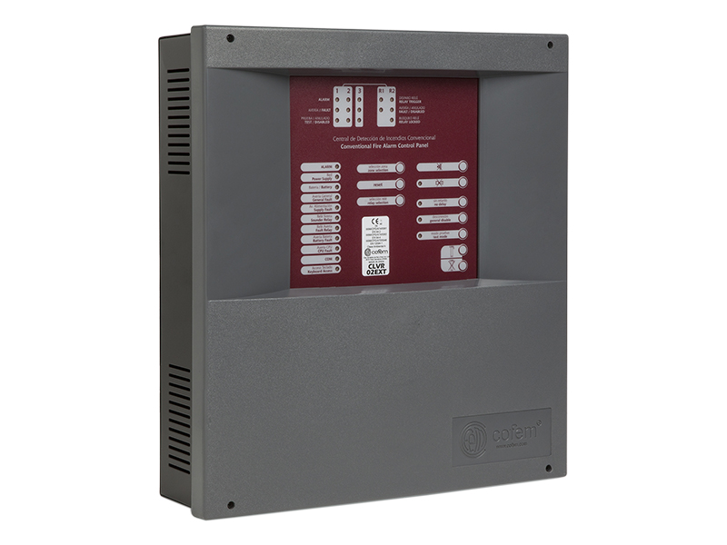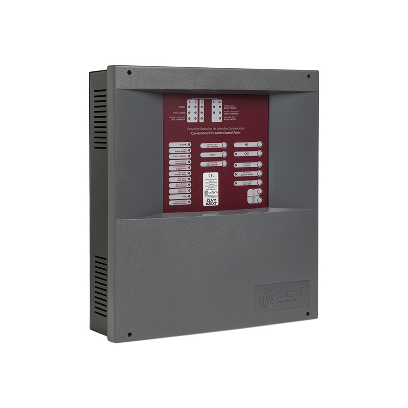 COFEM Hagyományos automatikus vezérlőpanel 2 zónás, oltási funkcióval. EN 54-2, EN 54-4 és EN 12094-1 CE jelöléssel tanúsítva.