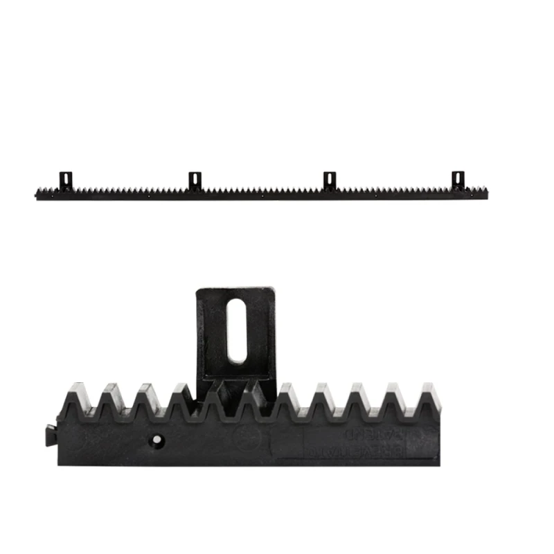 - Anyag: Fémszál erősítésű műanyag – a fogasléc belsejében futó acélszálak növelik a szerkezeti szilárdságot, csökkentik a deformációt, és biztosítják a hosszú távú működést még intenzív igénybevétel esetén is.