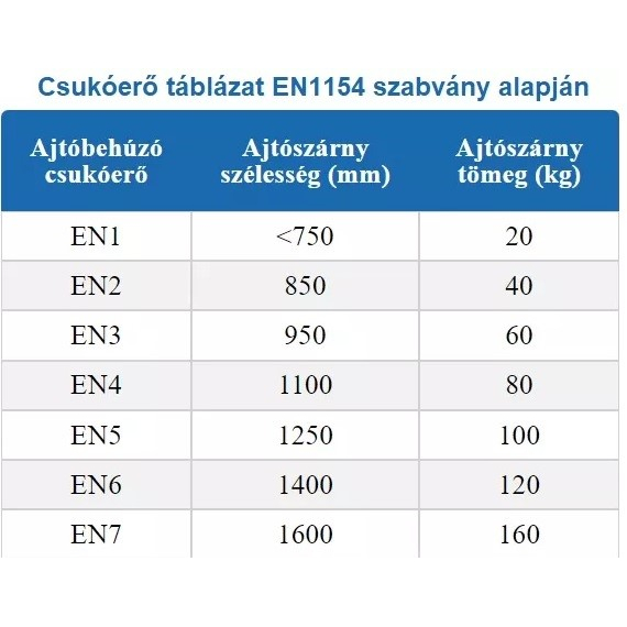 - Csukóerő (EN 1154): EN 2/3(4),