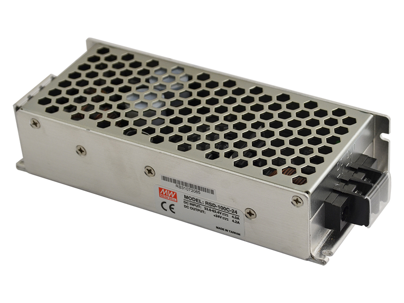 PULSAR DC/DC átalakító. Tápfeszültség: 33,6÷62,4VDC. Kimeneti feszültség: 4,2A/24VDC. Hatásfok: 91%. Védelem: SCP, OLP, OVP, OHP*. Méret: Szé=161 Mé=68 Ma=36mm