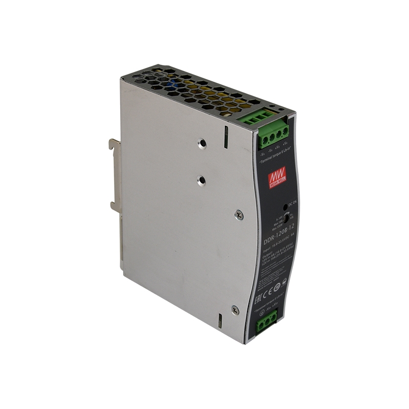 PULSAR DC/DC átalakító DIN sínhez. Tápfeszültség: 16,8÷33,6VDC. Kimeneti feszültség: 10A/12VDC. Feszültség beállítási tartomány: 9÷14VDC. Hatásfok: 89%. Védelem: SCP, OLP, OVP*. Méret: Szé=32 Ma=125,2 Mé=102 mm