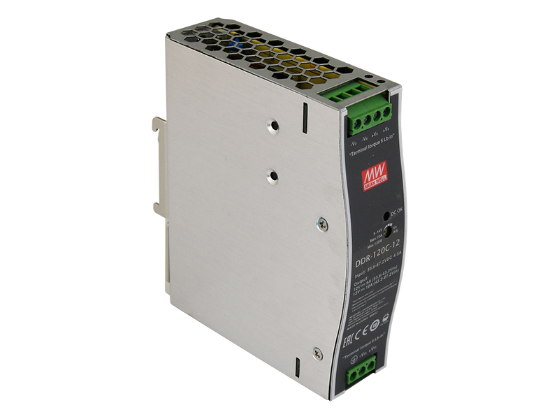 PULSAR DC/DC átalakító DIN sínhez. Tápfeszültség: 33,6÷67,2VDC. Kimeneti feszültség: 10A/12VDC. Feszültség beállítási tartomány: 9÷14VDC. Hatásfok: 89,5%. Védelem: SCP, OLP, OVP*. Méret: Szé=32 Ma=125,2 Mé=102 mm