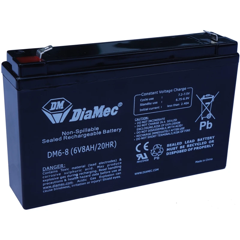 DIAMEC AGM (VRLA/SLA) Gondozásmentes Zárt Akkumulátor – 6 V, 8 Ah