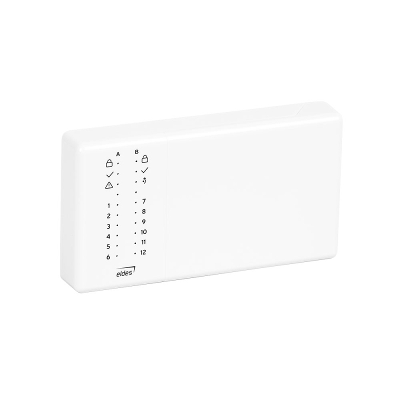 ELDES Kezelő, rádiós, LED kijelzés, ESIM364, ESIM384, PITBULL ALARM és PITBULL PRO központokhoz, 868 MHz, zóna- és partícióállapot visszajelző LED-ek, 1 db zónabemenet, beépített hőmérsékletérzékelő, szabotázsvédelem, max. működési távolság 3000 m (nyílt területen), fehérszínű ház, tápfeszültség 3db 1,5V Litium AA FR6 (IEC) / 15LF (ANSI/NEDA) vagy 1,5V Alkáli AA LR6 (IEC) / 15A (ANSI/NEDA) telep, méret 145x80x29 mm, működési hőmérséklet -10°C+55°C