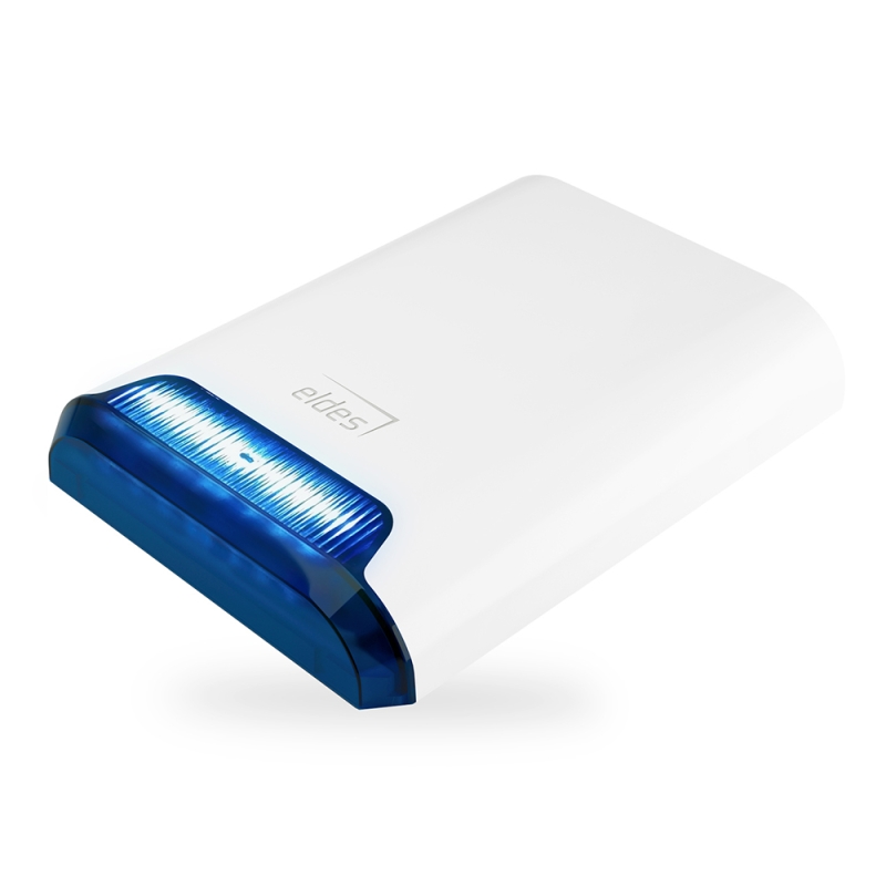 ELDES Sziréna, kültéri, vezeték nélküli, 868 MHz működési frekvencia, ELDES ESIM384, Pitbull Alarm PRO központokhoz, piezó hangszóró, 104-110dB@1m hagnyomás, kékszínű LED-es fényjelzés, max. működési távolság 3000 m (nyílt területen), beépített hőmérsékletérzékelő, tápfeszültség 6 db Lithium CR123 telep (tartozék) vagy 8-15V DC 1A külső tápegység, IP54, méret 289.6 mm x 210 mm x 50.1 mm, működési hőmérséklet -30 C - +55 C