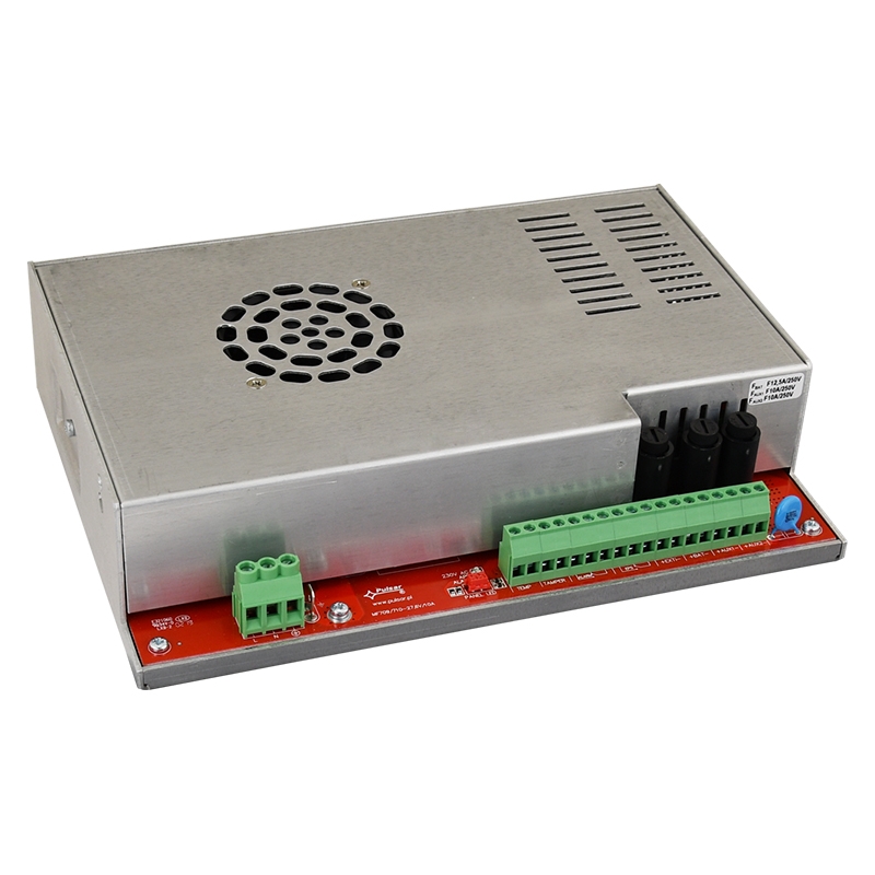 PULSAR tápegység modul a beépített tűzjelző rendszerekhez. Tápfeszültség: 230VAC. Kimeneti feszültség:-7,4A / 27,6VDC – folyamatos működéshez – Imax a. -10,0A / 27,6VDC – időszakos működéshez – Imax b (5min). Akkumulátor töltőáram: 2,6A. Akkumulátorok: 2x40÷65Ah/12V. PSU rendszer áramfelvétele: 85 mA. Hatásfok: 88%. Védelem: SCP, OLP, OVP, UVP*. Technikai kimenetek:. EPS FLT – feszültség hiba AC, ALARM – collective failure. Megfelel az szabványoknak: EN 54-4, EN12101-10. Teljesítmény nyilatkozat CNBOP-PIB No. 1438-CPR-0630. Méret: Mé=237, Szé=168, Ma=55 [+/-2 mm]