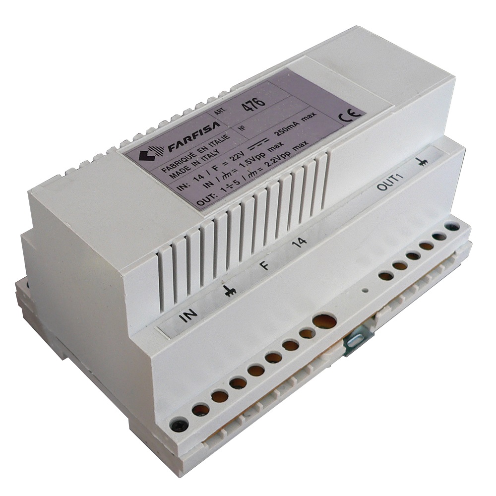 FARFISA Erősítő és videojel elosztó, tápfeszültség: 21Vdc, áramfelvétele: 250mA