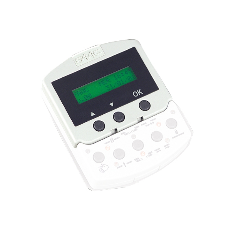 FAAC Kezelő, programozáshoz, mérete: 80x65x12, SD KEEPER, hozzáférési jelszó/ nyitási és zárási idő/szünetidő/lassítási sebesség/be- és kimeneti funkciók/ütemező funkciók programozása, diagnosztika, működési ciklus számláló, LCD kijelző, 3 nyomógomb, FAAC F790830SD KEEPER programozói fali kezelőhöz, méret 80x65x12 mm. Olasz