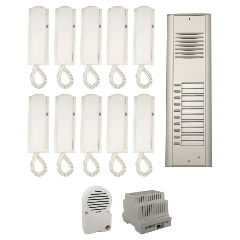 Ez a kaputelefon szett ideális választás társasházak, kisebb lakóparkok, irodaházak és egyéb olyan épületek számára, ahol 10 lakás vagy egység számára kell biztosítani a beléptetési és kommunikációs funkciókat.