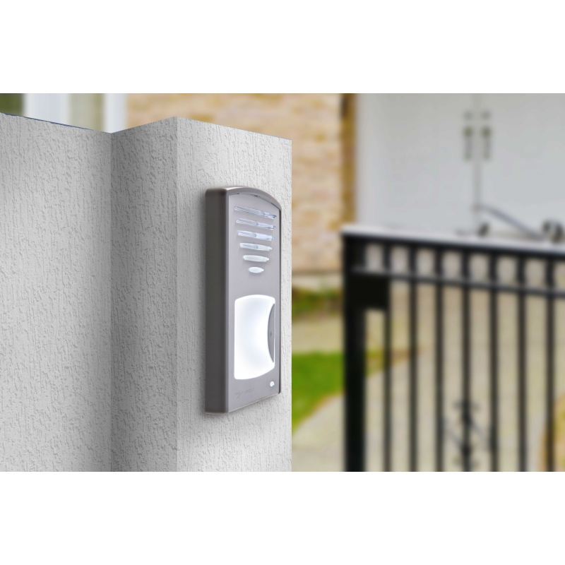 - 1 db felületre szerelhető kültéri nyomógombos panel (eloxált alumíniumból, 2 nyomógombbal)