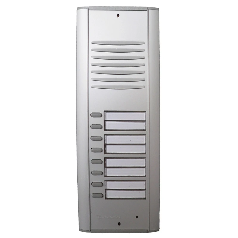 - 8 nyomógomb: Az egység 8 különálló nyomógombbal rendelkezik, amelyek lehetővé teszik több lakás vagy iroda egyszerű és gyors elérését.